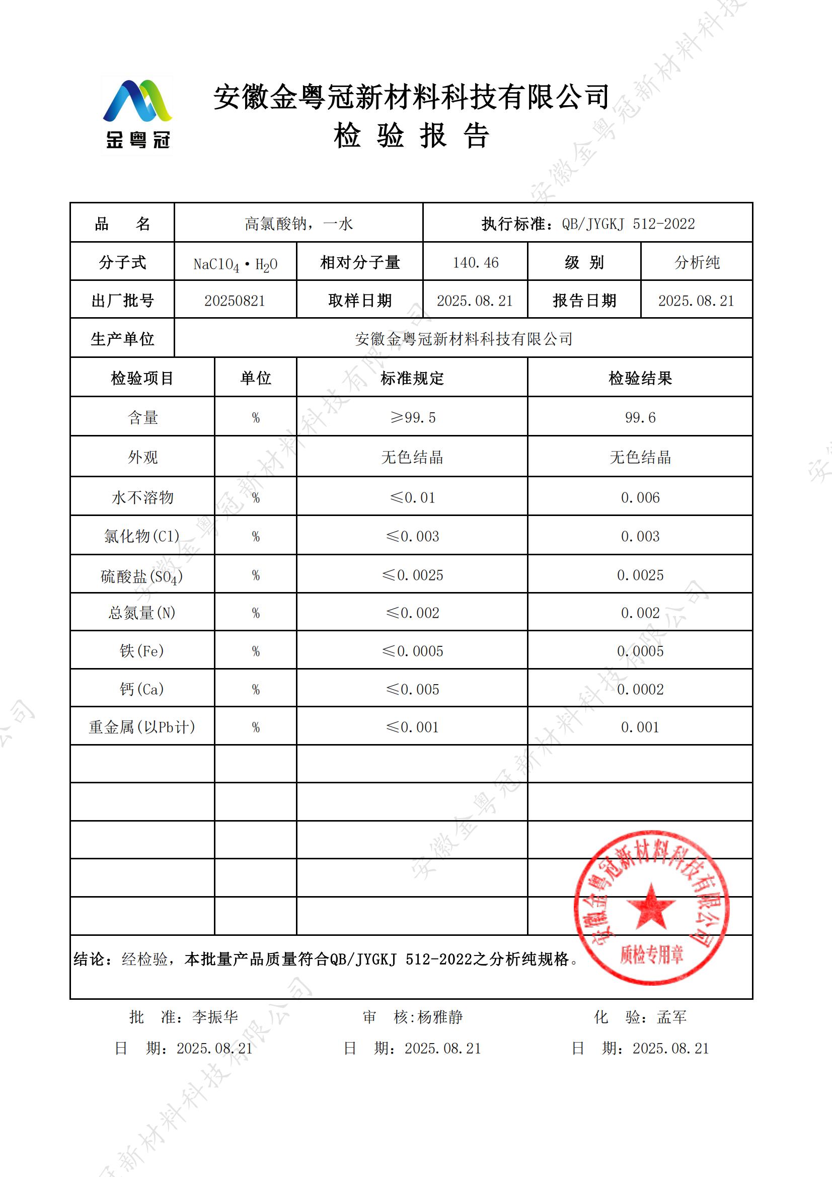 高氯酸钠(NaClO₄)是一种强氧化性无机盐,白色结晶粉末或颗粒,易溶于水和有机溶剂。作为高氯酸系列中的重要化合物,兼具氧化剂的强效性和相对稳定性,在军工、航天推进剂和化学合成领域具有关键应用价值。其水溶液呈中性,无水物有吸湿性。